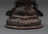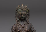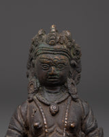 This Antique Copper Dzambhala Statue is 11cm tall and 8cm wide and weighs 0.35kg. Carefully created from copper with an antique finish, it elegantly showcases the deity's attributes, making it an excellent addition to altars, meditation rooms, or any sacred area in your house. The antique finish enhances its look, representing enduring solidity and eternal spiritual significance.