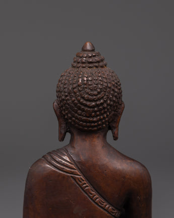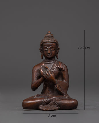 This Authentic Vairocana Buddha Statue will bring the tranquil presence of Vairocana Buddha, the cosmic mirror and embodiment of universal truth, into your hallowed area. This figurine, 10.5 cm tall and 8 cm wide and expertly fashioned from brass, is a small but spiritually potent addition to any home altar, meditation area, or shrine. Weighing 0.66 kilogram, it embodies the quality of Buddhist wisdom and clarity and has an anchoring presence.