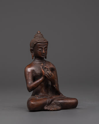Vairocana is regarded as the most important of the Five Dhyani Buddhas in Tibetan Buddhism. He represents the realization of Dharmakaya and the purifying of ignorance. In his traditional teaching mudra, Vairocana is seen in this exquisitely crafted brass statue, exuding serenity and wisdom. This Authentic Vairocana Buddha statue is a potent reminder of inner truth and awakened consciousness, whether utilized in spiritual rituals, tantric practice, or daily meditation.