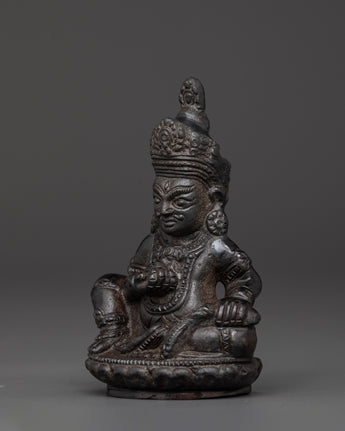 Handcrafted Black Dzambhala Sculpture | Copper Wealth Deity Figurine for Good Fortune