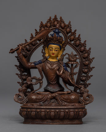 Manjushri is regarded as a fully enlightened Buddha in Northern Buddhism's Tantric literature, with many manifestations and appearances covering all four divisions of Tantra, simple and complex in form. Manjushri is depicted in the Eleven Figurative Forms as Peaceful, Semi-peaceful, Wrathful, and Animal Featured.