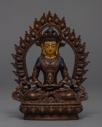 Amitayus, often known as "The Buddha of Endless Life," is a sambhogakaya aspect of Amitabha, commonly linked with longevity. He is frequently depicted reclining and holding a vase with the nectar of immortality. One of the three gods of immortality, Amitayus is one of the three gods of immortality.