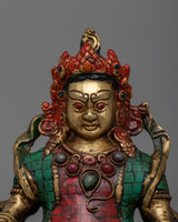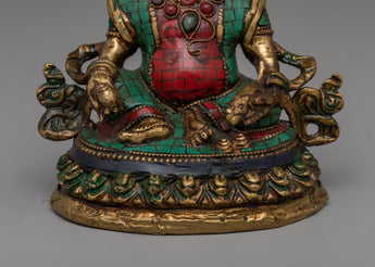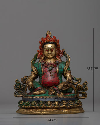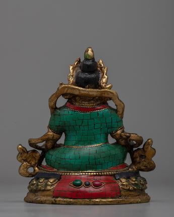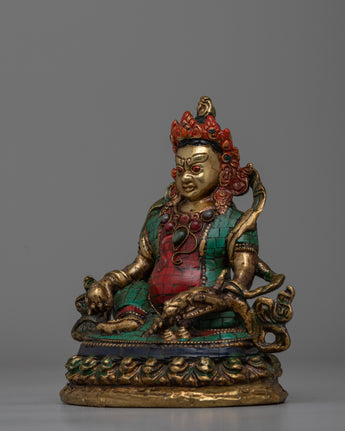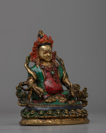 The Buddhist Sculpture of Kubera portrays the lord of wealth and the savior of the north. The blessing of Dzambala and the value of his practice are universal. It assists us in minimizing or reducing all misfortunes and obstacles and growing all good fortune and happiness. Kubera's mission from the gods in Hinduism was to make worshippers wealthy. This gold-gilded Dzambhala statue is excellent for Vajrayana practice.