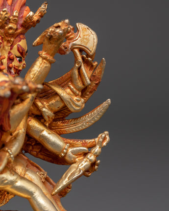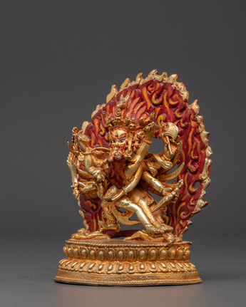 The gold coating enhances the spiritual energy of this deity, while the copper material provides both cultural depth and protection. Display this statue as a focal point in your practice to invoke the blessings of Hayagriva, inviting protection, power, and wisdom into your life. It also serves as a meaningful gift for anyone devoted to Tibetan Buddhist practices or seeking spiritual strength.
