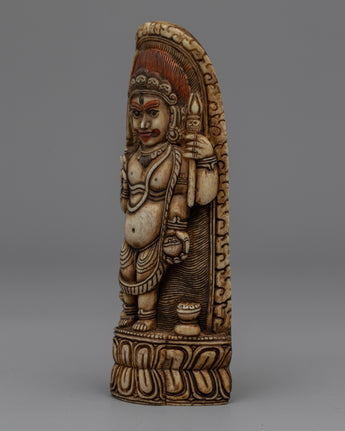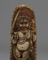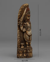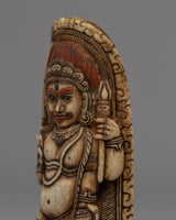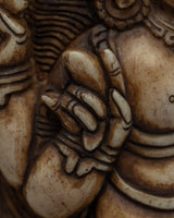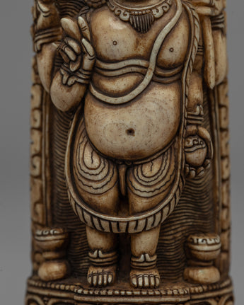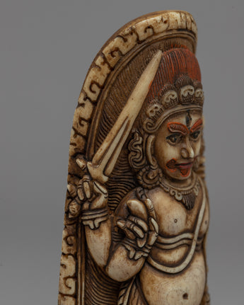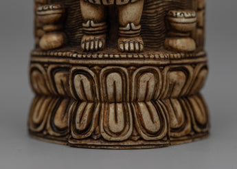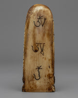 The Buddhist Handmade Stamp exemplifies skillful craftsmanship, beautifully carved on ethically sourced yak bone. The seal, which represents the Four-Armed Mahakala, a respected deity in Buddhist tradition recognized for his protective and auspicious attributes, has spiritual importance. The carving's lines and contours are meticulously detailed, encouraging practitioners to connect with Mahakala's divine spirit.