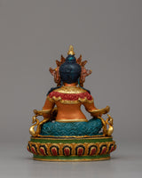 Our Buddhist Prosperity Deity Dzambhala Statue, measuring 10 cm tall and 8 cm broad, is a meticulously handcrafted Tibetan Buddhist deity figurine made of copper, plated in radiant gold, and painted with vibrant acrylic detailing. At 0.25 kg, this spiritual sculpture is ideal for altars, meditation places, and prosperity ceremonies. Gold plating denotes plenty, heavenly power, and auspicious energy, while copper improves spiritual conductivity, making this Dzambhala figure a must-have talisman for attracting wealth, prosperity, and financial security.