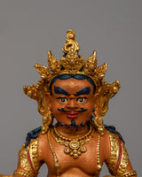 Dzambhala is a protective deity associated with wealth and prosperity. Many forms and traditions are associated with this wealthy deity, but he is usually depicted as yellow and holding a mongoose in his left hand. This statue has accurate traditional iconography and fine details.