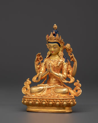 This gold-plated Chenrezig figurine is ideal for enhancing your daily spiritual practice, deepening meditation, or as a thoughtful gift.