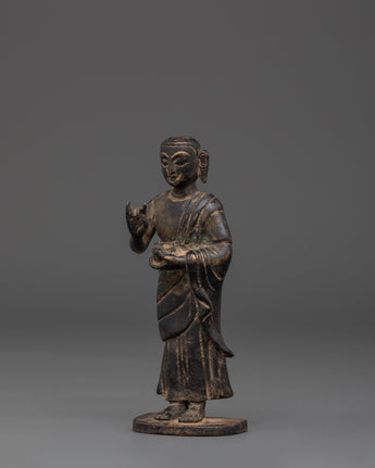 Handcrafted from copper, this 0.45kg statue showcases intricate detailing and an elegant antique finish, highlighting the artisan’s skill and dedication. In Buddhist tradition, the standing Buddha represents active engagement in guiding others toward enlightenment, making it a meaningful addition to any spiritual collection. Whether gifted to a loved one or placed in your own sacred space, this piece carries blessings of harmony, wisdom, and positive energy.
