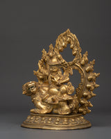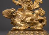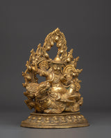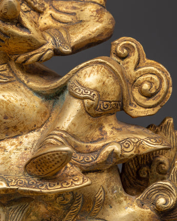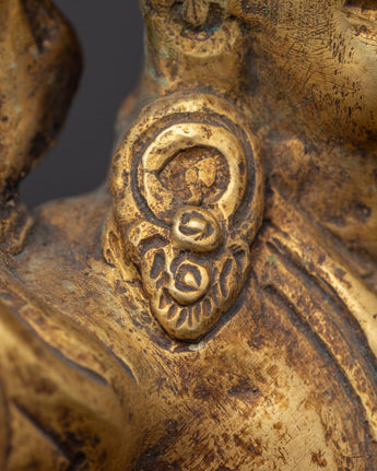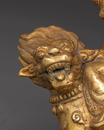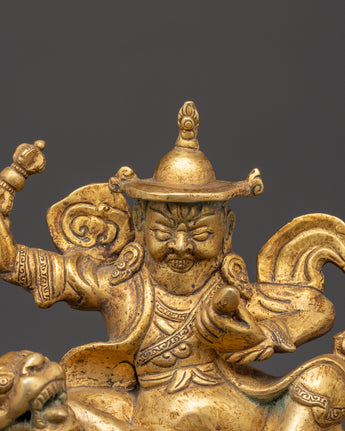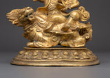 Handcrafted Copper Dorje Legpa on Snow Lion Sculpture