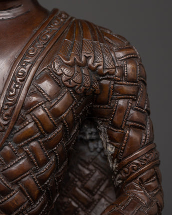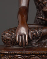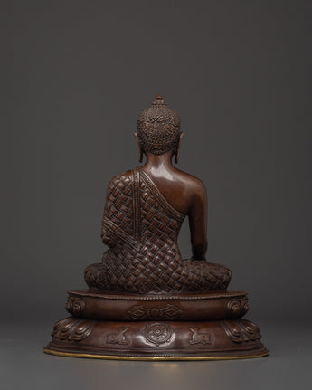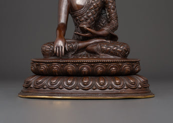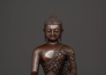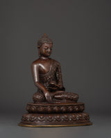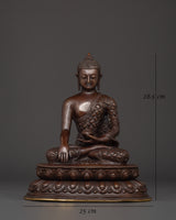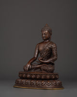 The Enlightened Buddha Shakyamuni Figurine brings peace and spiritual harmony into your area. This stunning sculpture, 28.5 cm tall and 25 cm broad, depicts Buddha in a peaceful meditation stance. The statue, expertly carved from oxidized copper, emits a profound sense of calm and wisdom, making it an ideal addition to any meditation room, home decor, or spiritual altar. The statue's beautifully crafted craftsmanship symbolizes the enlightened presence of Shakyamuni Buddha, representing spiritual awakening and inner harmony.