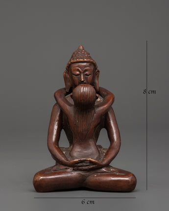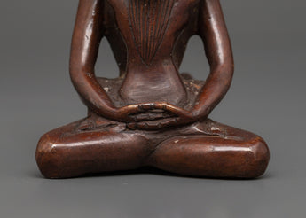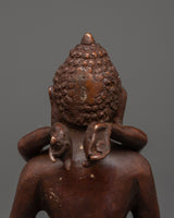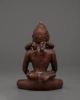 This Enlightened Buddha with Consort statue is a stunning depiction of Tantric union, handcrafted from oxidized copper to symbolize the profound spiritual symbolism of Yab-Yum in Tibetan Buddhism. This little yet profound artwork, measuring 8 cm in height by 6 cm in width and weighing 0.24 kg, radiates an aura of calm, harmony, and enlightenment. The statue depicts Samantabhadra in union with his bride, representing the harmonious combination of wisdom and compassion. The intricate craftsmanship of the embrace emphasizes the notion of spiritual union, making it a valuable addition to meditation rooms, altar settings, or as a centerpiece in spiritual decor. The oxidized surface lends a worn appearance, emphasizing the craftsmanship and spiritual value.