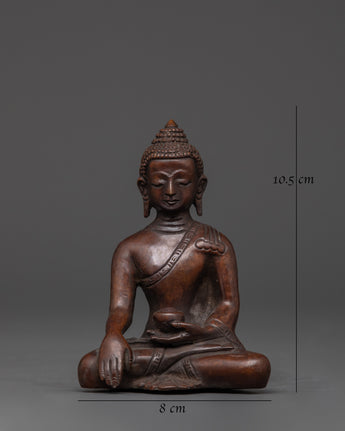 10.5cm Oxidized Copper Enlightened One Statue for Buddhist Altar and Meditation Space