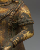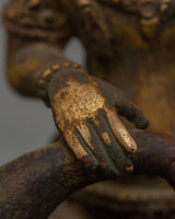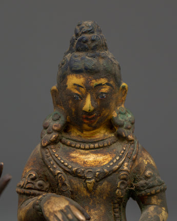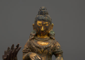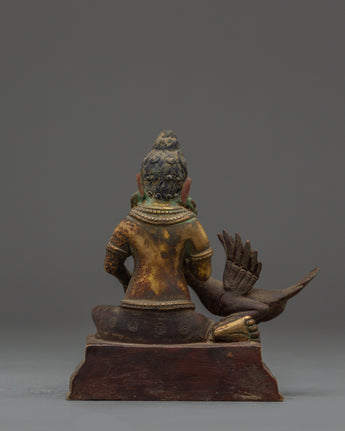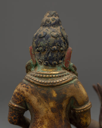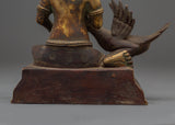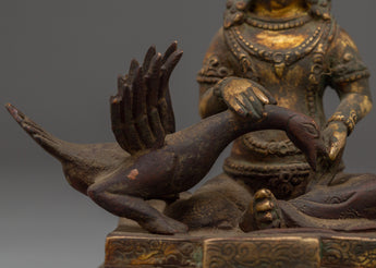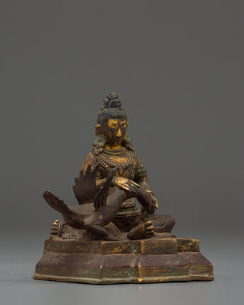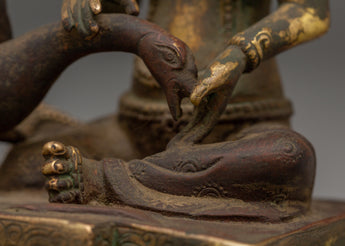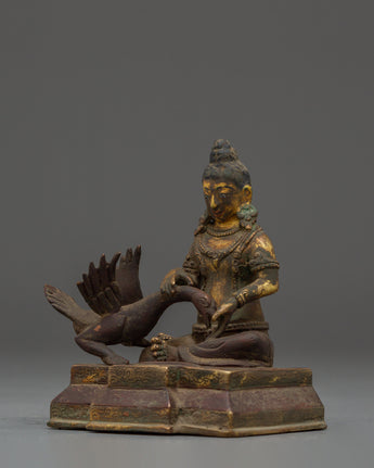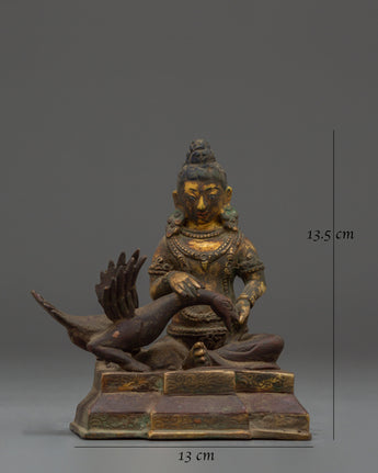 The Enlightened Siddhartha Gautama Sculpture captures a serene moment from the Buddha’s early life, symbolizing his path toward enlightenment. Crafted from a copper body with an antique finish, this statue measures 13.5cm in height and 13cm in width, and weighs 1.32kg. Siddhartha is shown in a calm, relaxed posture beside a swan, a symbol of purity, wisdom, and spiritual clarity in Buddhist tradition. The gentle interaction between the figure and the bird reflects harmony with nature and the awakening of compassion and understanding.