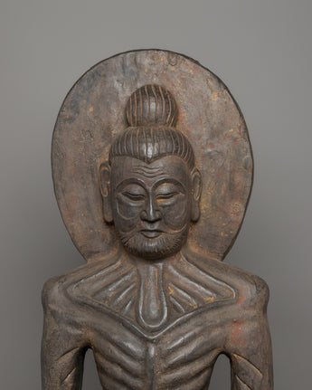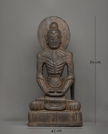 Fasting Shakyamuni Buddha Wooden Statue | Traditional Himalayan Artwork