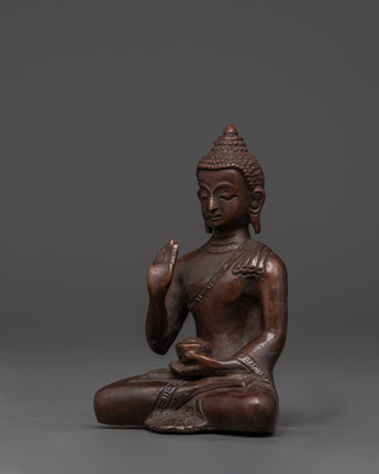 Handcrafted Fearless Deity Amoghasiddhi Oxidized Copper Statue | Spiritual Transformation