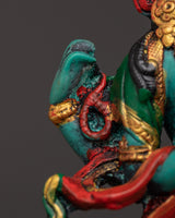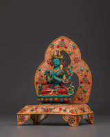 Experience the heavenly compassion and peace of the Chenrezig Statue with Halo and Throne Base, a remarkable work of spiritual craftsmanship. Standing 23.5 cm tall with a 17 cm base, this finely carved statue represents compassion in Tibetan Buddhism. Chenrezig, also known as Avalokiteshvara, is revered for his boundless love and mercy, and this portrayal perfectly conveys his contemplative presence. This Buddhist god sculpture weighs around 0.88 kg and blends traditional workmanship with symbolic components.