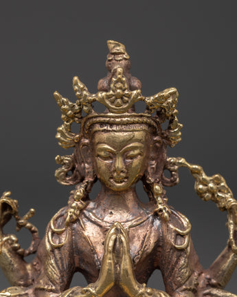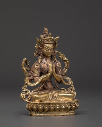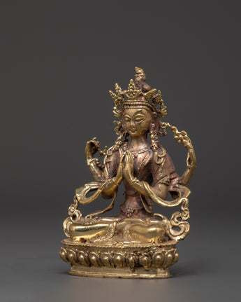 Sacred Compassionate Four-Armed Deity Chenrezig Statue | Hand-Crafted Figure of Compassion