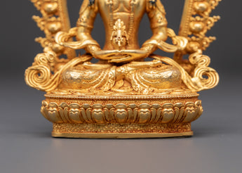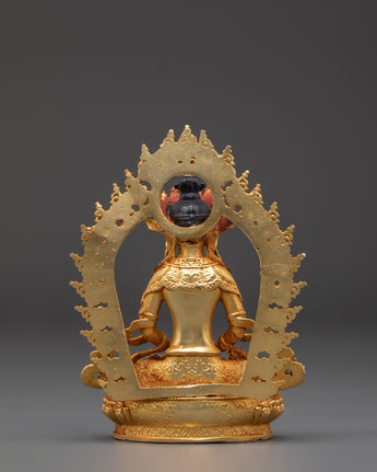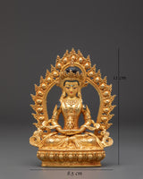 Amitayus is revered in Buddhism for his association with longevity, wisdom, and protection, and his image is often invoked for blessings of long life, healing, and well-being. The gold plating adds a divine, luminous finish, while the copper body brings grounding energy, making this statue not just a spiritual symbol, but also a beautiful artistic piece.