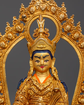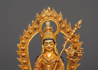Gold Plated Guru Rinpoche Statue | Tibetan Buddhist Altar Figurine