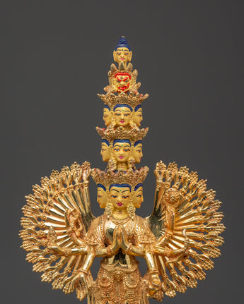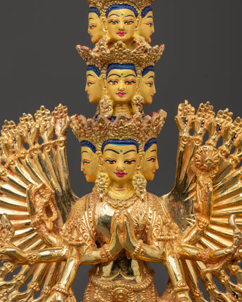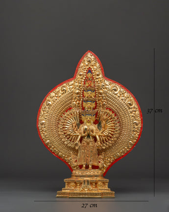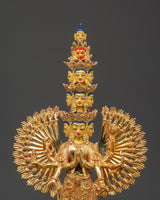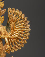 Copper Gold Plated Thousand Armed Chenrezig Statue | Copper with Gold Plating