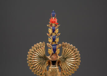 This gold-plated thousand-armed Chenrezig (37cm x 27cm, 2.11kg) is a representation of Chenrezig, the Bodhisattva of compassion and wisdom. Crafted with a copper body and beautifully gold-plated, this statue embodies both divine elegance and spiritual energy, making it the perfect centerpiece for your Buddhist altar or meditation space.