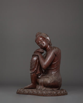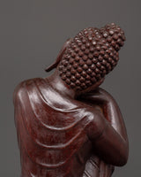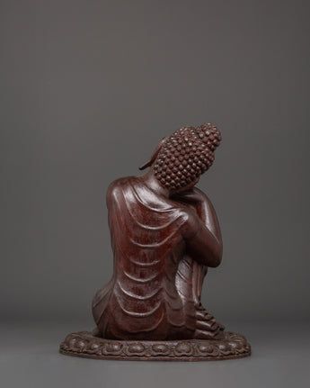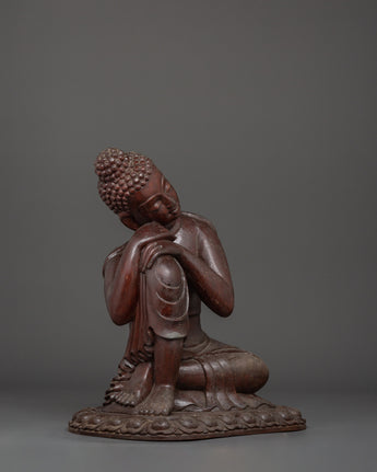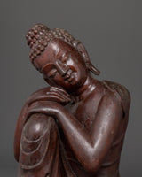 This hand-carved wooden Resting Buddha Statue adds serenity and mindful energy to your area. This beautiful 33.5 cm-tall statue is expertly crafted from wood and represents the Buddha in a unique resting stance, his head gently resting on his knee, emanating deep calm and inner tranquility. This serene artwork of the Buddha represents inward reflection, healing, and the pursuit of spiritual balance, making it an excellent centerpiece for your meditation room, yoga studio, or relaxing home shrine.