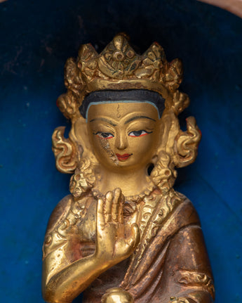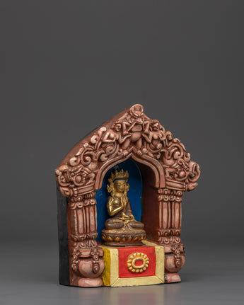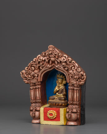 Handcrafted Altar Box with Buddha Statue | Copper Statue with Acrylic Finish
