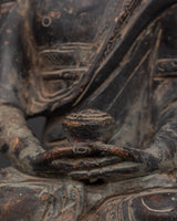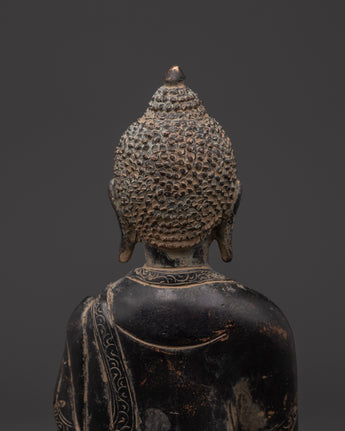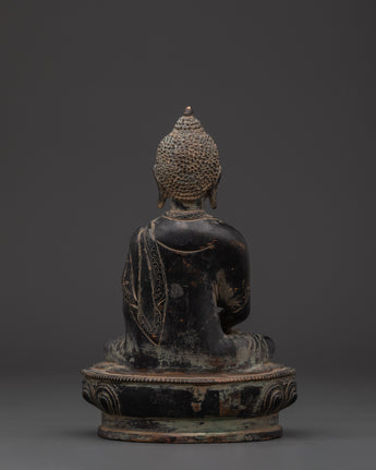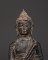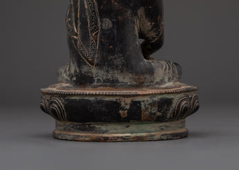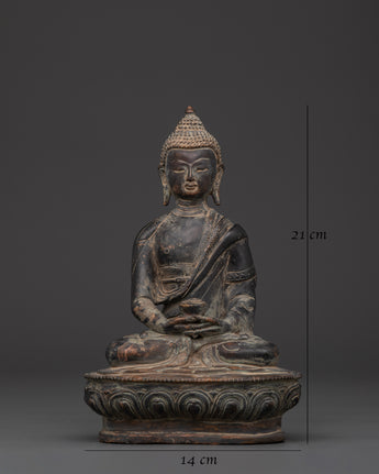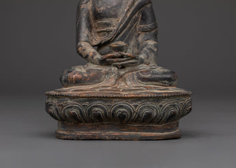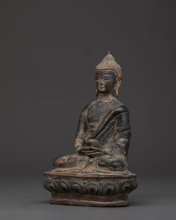 This handcrafted Amitabha Buddha statue creates a peaceful atmosphere in any environment, making it an ideal addition to meditation spaces or home altars. Crafted from copper and adorned with an antique appearance, the statue embodies the essence of compassion and knowledge. The tranquil expression and meditative posture of Amitabha Buddha promote attention and inner tranquility, rendering it a perfect artifact for spiritual contemplation and practice.