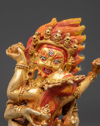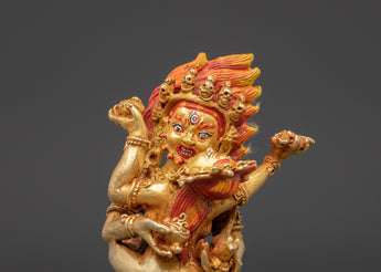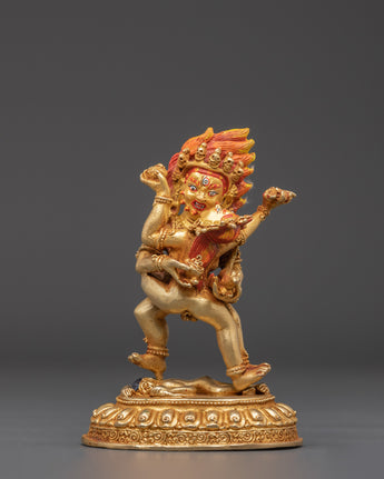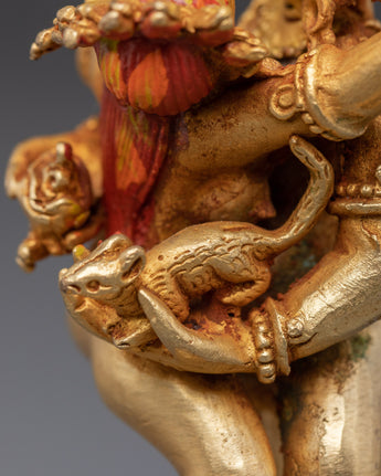 The meticulous workmanship reflects Dzambhala's strong yet caring character, encircled by flames that represent his transformative ability to eradicate negativity. This statue is ideal for displaying on home altars, meditation rooms, or holy shrines as a symbol of giving and spiritual wealth. Its small size makes it perfect for both personal devotion and as a thoughtful gift.
