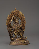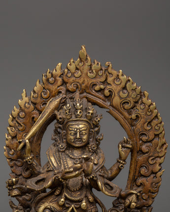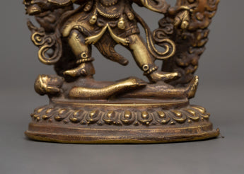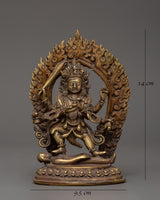 This brass Mahakala statue is gorgeous art and a powerful spiritual talisman. It prevents evil and brings protection, prosperity, and spiritual development. This Mahakala statue is essential for anyone seeking to deepen their spiritual journey, whether they practice Vajrayana Buddhism or desire a powerful spiritual presence in their home. Its rich design and powerful energy will enhance your meditation practice while providing a calm and safe space for your sacred area.