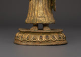 This handcrafted Dipankara Buddha statue, a representation of enlightenment and tranquility, will bring peace, mindfulness, and spiritual energy into your home. This exquisitely crafted statue, measuring 28 cm in height and 12.5 cm in width, boasts a deep golden tone and classic appeal due to its pure brass composition. It is a powerful item that weighs 1.18 kg and is ideal for home altars, meditation nooks, or spiritual interior design.