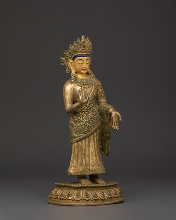 Dipankara Buddha, also known as the Buddha of Light, is believed to have predicted the arrival of Shakyamuni Buddha, the historical Buddha. This monument depicts his tranquil, enlightened presence, which is deeply connected to prior wisdom and enlightenment. The Dipankara Buddha, whether displayed as a centerpiece in your meditation room or on a Buddhist altar, emits a relaxing, enlightened aura that promotes reflection and spiritual growth.