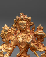 Every detail of the Handcrafted Drolkar Statue has been meticulously designed, from the delicate floral motifs framing the goddess to the calm, serene expression that perfectly captures her essence of compassion and wisdom. The gold-plated finish not only accentuates these fine details but also adds a glow, making this statue a captivating centerpiece. Its beauty transcends spiritual practice, serving as an elegant decorative accent in any home or meditation space. Bring harmony, inspiration, and sacred energy into your environment with this exquisite symbol of Tibetan spirituality.