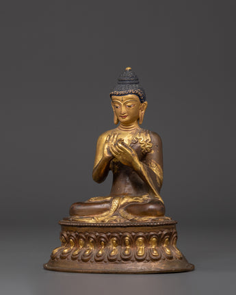 Handcrafted Vairocana Statue | Oxidized Copper & Gold Plated Buddhist Deity Sculpture
