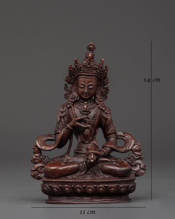 This Handcrafted Vajrasattva Sculpture, made from copper with an elegant oxidized finish, stands 14 cm tall and weighs 0.53 kg. This exquisite Tibetan Buddhist statue embodies the qualities of Vajrasattva, the deity of purification and healing, bringing peace, purity, and protection to your spiritual practice. Perfect for meditation or enhancing sacred spaces, it supports your journey toward spiritual clarity and inner growth.