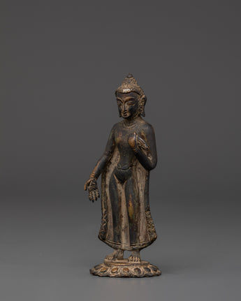 Handmade Dipankara Buddha Figurine | Copper Statue with Antique Finish