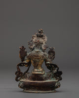 The antique copper finish gives the figurine a distinct, aged appearance that enhances its spiritual presence. Whether employed for meditation, spiritual rites, or as a sacred decorative element, this Green Tara figurine will improve your practice. Allow the energy of Green Tara to guide and protect you as you incorporate this stunning picture into your home or spiritual sanctuary.