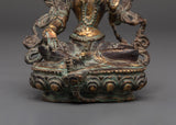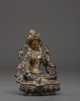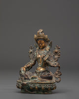 Handmade Green Tara Figurine | Antique Copper Buddha Statue