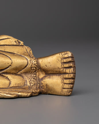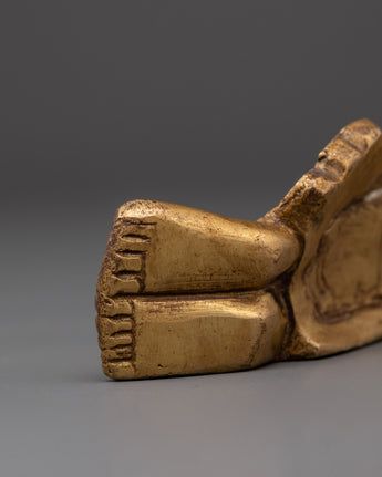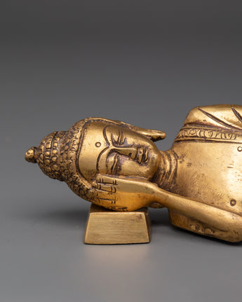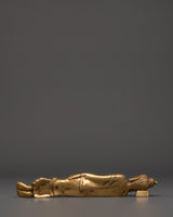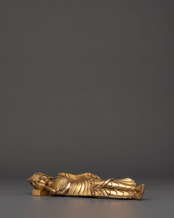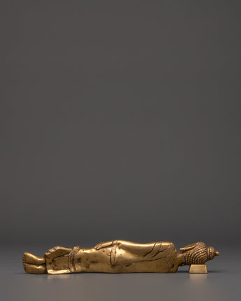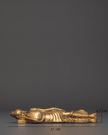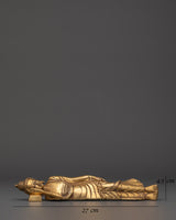 Handcrafted with precision from brass, this 27cm wide statue weighs slightly more than 1kg, providing a solid yet manageable piece for display. The intricate details in the robe and facial features highlight superior craftsmanship, embodying the tranquility and dignity of the Enlightened One. The sleeping Buddha is a meaningful Buddhist emblem, symbolizing inner serenity, complete liberation from suffering, and the endless cycle of life and death. Add this timeless sculpture to your collection to foster spiritual growth and cultivate a mindful lifestyle.