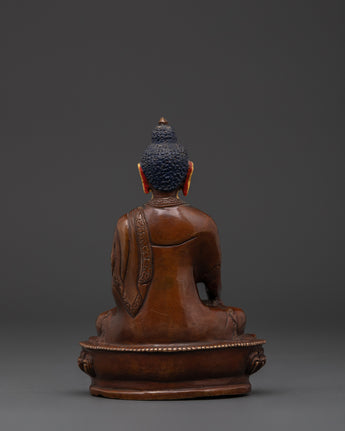 Himalayan Buddha Shakyamuni Statue | Oxidized Copper & Gold Face Painting