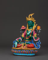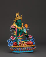 Himalayan Green Tara Sculpture | Handcrafted Copper Body with Acrylic Detailing