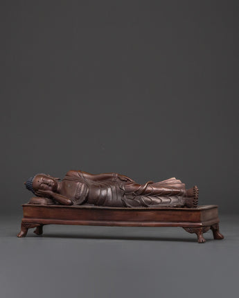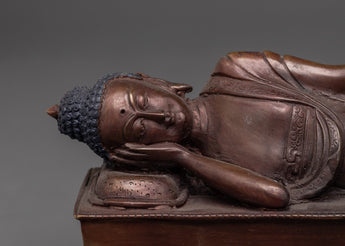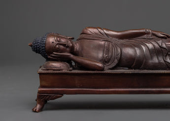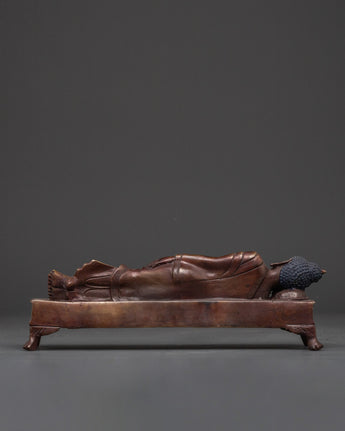 Historical Sleeping Buddha Statue | Handcrafted Oxidized Copper Reclining Buddha Figurine