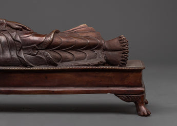Handcrafted Oxidized Copper Historical Sleeping Buddha Statue | Traditional Tibetan Reclining Buddha