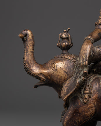 Handmade Indra on Elephant Statue | Sculpture for Home Temple