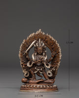 The Kal Bhairav Statue is an amazing work of art that represents protection, transformation, and spiritual awakening. This statue is made of oxidized copper and plated with silver. It stands 13 cm tall and 9.5 cm wide, and weighs 0.42 kg. Kal Bhairav, a wrathful incarnation of Lord Shiva, denotes the annihilation of negativity and fear, making it an effective emblem for spiritual pursuits. This statue reminds us of the divine's strength and transformational ability.