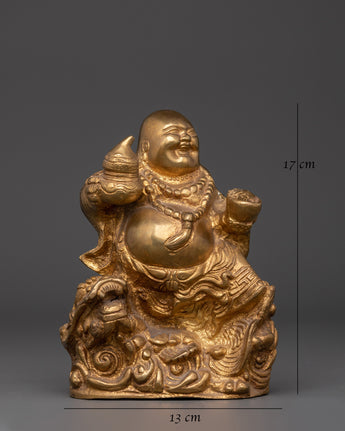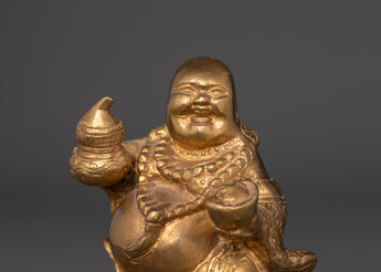 At 2.70kg, this firm and finely crafted figure gives presence and beauty to any altar, meditation room, or interior décor. It's an excellent spiritual present or centerpiece for individuals seeking harmony, happiness, and financial prosperity. The golden finish heightens its sense of jubilation and rapid flow. This Laughing Buddha statue, whether used for Feng Shui alignment, money attracting rituals, or simply as a reminder of joy, is a potent symbol of abundance, good luck, spiritual energy, and joyful living.