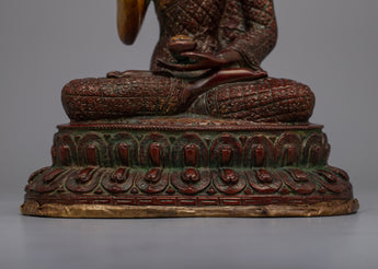 The Lord Brass Amoghasiddhi Buddha Statue is an excellent choice for personal altars, meditation areas, or as a centerpiece for holy situations. It is a strong symbol of courage and wisdom. Its presence fosters boldness, awareness, and a stronger connection to the enlightened qualities embodied by Amoghasiddhi Buddha.
