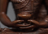 The Amitabha Practice Sculpture was machine-sculpted, painted on its face, and gilded with genuine 24-karat gold. This statue, which represents Himalayan Buddhism art, shows Amitabha sitting cross-legged and carrying an alms bowl. Various Buddhist holiday seasons, everyday yoga or meditation practices, or even private meditation sessions can all be performed using this sculpture. We have artistically placed a beautiful nimbus behind the deity.