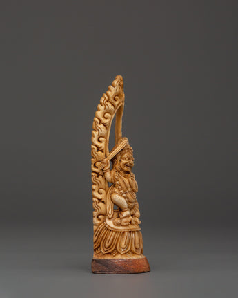 Mahakala Bone Carving Sculpture | Tibetan Wooden Base Ritual Figurine